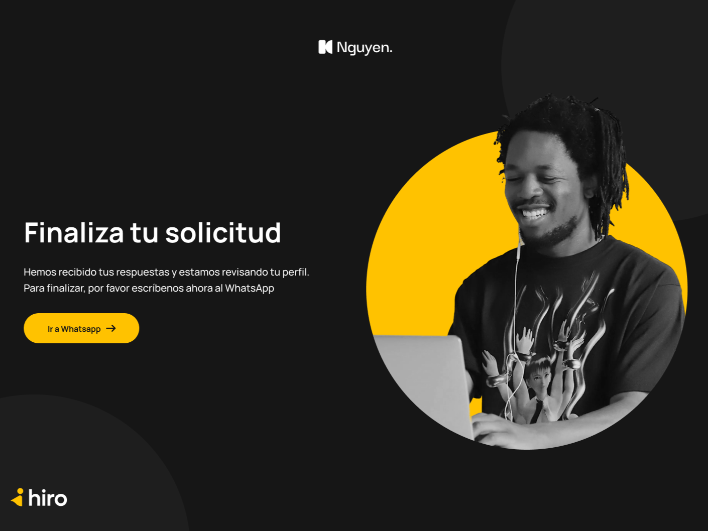 Hiro conversa con los candidatos por Whatsapp tras aplicar a la vacante reduciendo el tiempo de contestación y agilizando la evaluación de los candidatos para detectar lo que no parece en el curriculum.